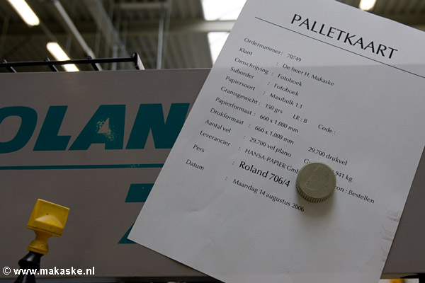 De technische gegevens met een magneet vastgezet op de drukpers.