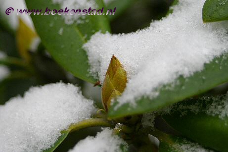 Schreef ik gisteren nog dat we het nu moeten doen met kou, wind en regen; vandaag worden we wakker met sneeuw. Als er al weergoden bestaan dan willen ze zich dit jaar wel extreem bewijzen. Het levert wel leuke plaatjes op.