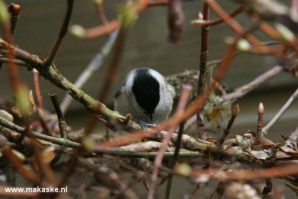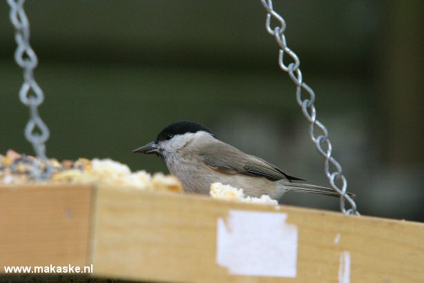 Kenmerkend voor dit meesje is de zwarte kop zonder witte vlek en geen witte streepjes op de vleugel.