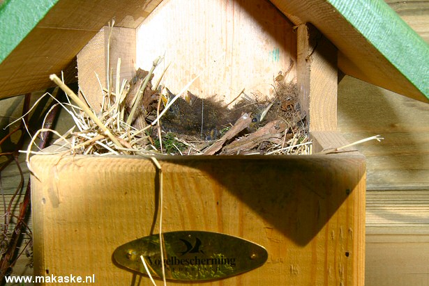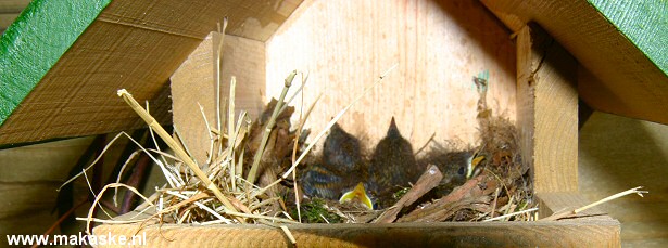 Vanmiddag kon ik mijn nieuwsgierigheid niet langer bedwingen en heb met mijn camera een snelle blik in het nest geworpen. Daar trof ik dit aan: