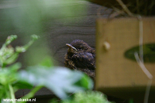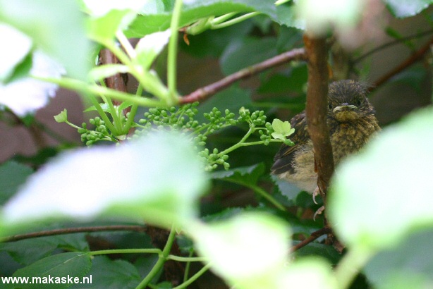Vanmorgen was het zover. Terwijl ik met de honden aan het wandelen was, verlieten de jongen het nest. Gelukkig zag Corine en het schouwspel en greep de camera (waar je mee omgaat word je mee besmet).