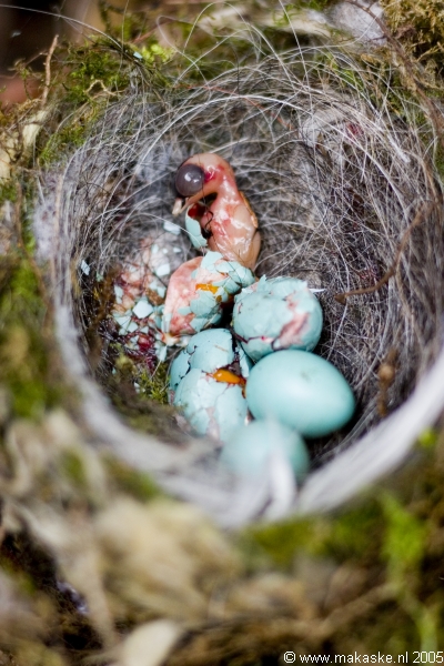 Of de hond het nest zelf uit de beukenheg heeft gesnaaid of dat het nest is vernield door een kat uit de buurt of een ander beest, is niet meer te achterhalen. Wel staat vast dat de vijf eieren nooit zullen uitkomen. Dit is dus een echt egg-cident