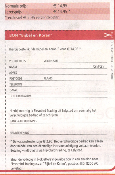 Dat belooft wat. Omdat ik de beeldschermkijkers van mijn weblog natuurlijk zoveel voordeel niet wil onthouden, kunnen zij onderstaande bonnen printen en opsturen naar De Stentor.