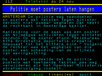 Een aantal van die posters was ronduit onsmakelijk, maar daar gaat het niet echt om. Er zijn wel meer onsmakelijke zaken heel normaal in deze wereld. Waar het wél om gaat, is dat de staat langzaam maar zeker steeds meer verworven vrijheden afpakt. Dat is een hellend vlak. Het is goed dat de rechter daar nu weer eens paal en perk aan heeft gesteld.