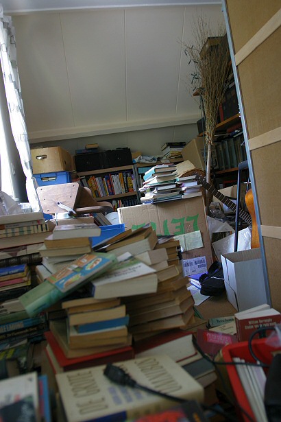 Waarom ik geen foto's laat zien van het andere deel van de kamer achter de boekenkast?
