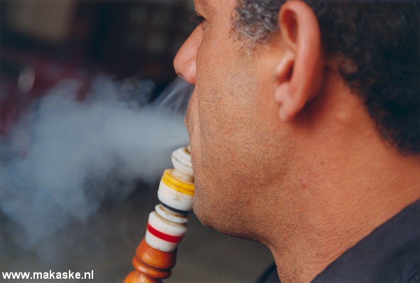 En dit is een Egyptenaar die een zware waterpijp rookt
