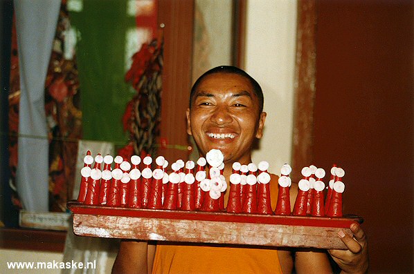 Een Boedistische lama komt kaarsjes brengen