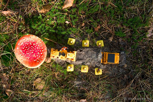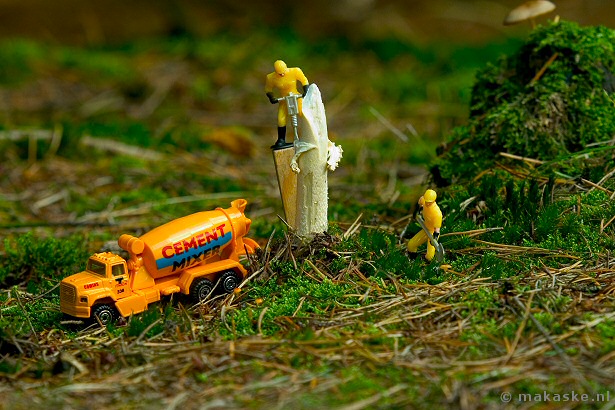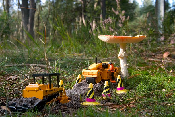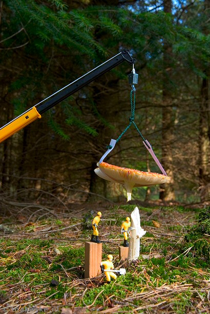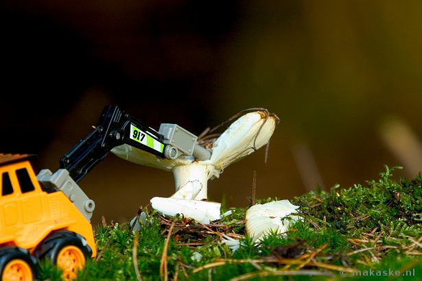 Er zijn geen paddo's voor deze reportage gesneuveld. De paddo's die uit elkaar liggen, waren ofwel al ontworteld ofwel beschadigd (de hoed - lees het dak - van de vliegezwam was gelukkig net die morgen afgeknapt... anders had ik er wel één onthoed voor die foto).