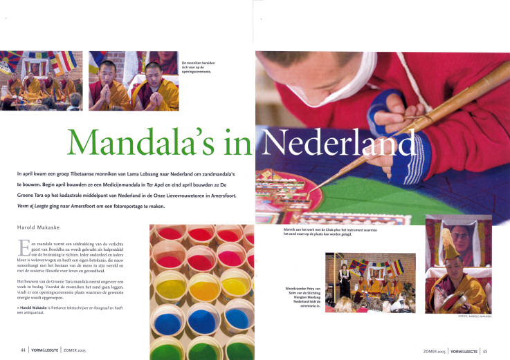 Nu in de winkel... de Vorm en Leegte. Boeddhisme Mens Samenleving met mijn fotoreportage van de mandala's in Amersfoort. Al zeg ik het zelf: het ziet er werkelijk prachtig uit die kleurenexplosie over vier pagina's.
