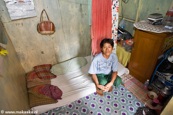De kamer/slaapkamer/keuken/opberghok van 22 euro per maand. Hij leeft hier samen met zijn moeder (zij was ergens in de stad aan het bedelen).