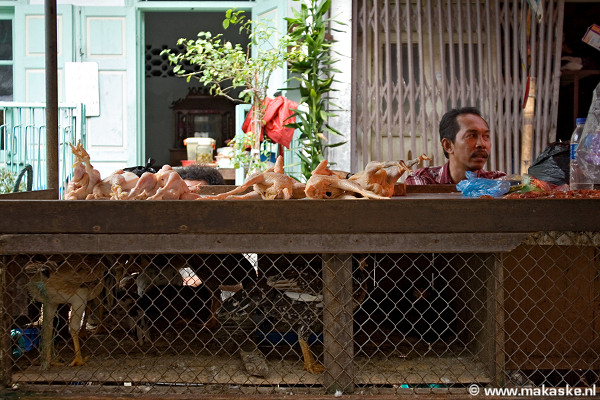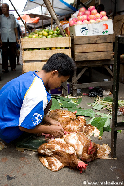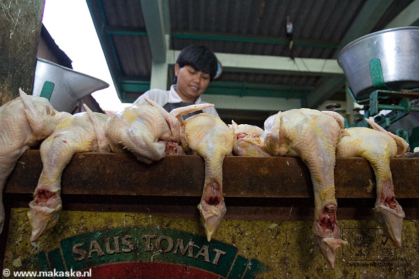 Tijdens ons bezoek overleden weer twee kinderen aan de vogelgriep. De president van Indonesië verklaarde tijdens de donorconferentie in Beijing dat het land er alles aan doet om de hygiëne te verbeteren. Laten we even kijken hoe dat eruit ziet in de praktijk...