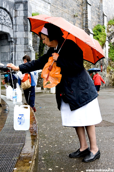 Onze Bernadette is bijna klaar met haar studie klassieke homeopathie. Door die kennis toe te passen op het water uit de grot moet wel een recept voor succes ontstaan. Ik zie de dosering helemaal voor me: schud het heilige water en sla het flesje op de platte hand. Voeg vervolgens een druppeltje toe aan een glas gekookt kraanwater. Deze gecanoniseerde mix moet wel leiden tot een explosief medisch mengsel. Als kruidenheks in oprichting kan ze volgens mij grote wonderen verrichten met dit water. Blinden zullen weer zien, doven zullen weer horen en kreupelen zullen weer huppelen.