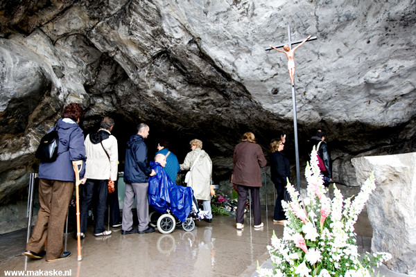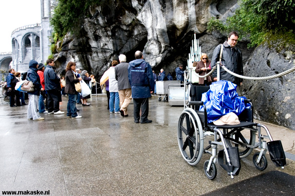 Links en rechts bij de grot staan lege rolstoelen. Je zou dus denken dat het werkt.