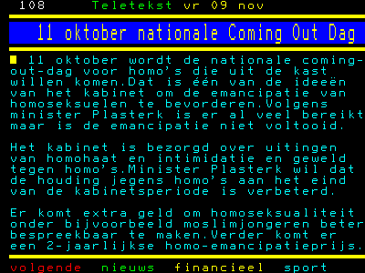 Het kabinet gaat 11 oktober uitroepen tot Coming Out Dag. Een volslagen belachelijk idee om de emancipatie van homo´s te bevorderen.