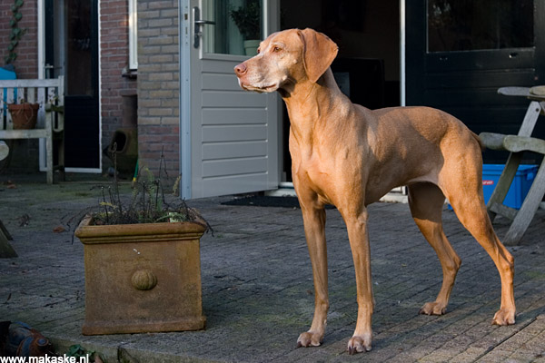 Graag stellen wij de nieuwe vriendin van Bram voor. Deze grijze ouwe tante heet Quiby (bij ons wordt dat natuurlijk Kwibus). Ze is deze week 10 jaar geworden en moest tot groot verdriet van haar baasje met spoed worden herplaatst omdat het kindje van de familie helaas ernstig allergisch blijkt te zijn voor honden. Omdat een hond van 10 moeilijk herplaatsbaar is en wij altijd ruimte hebben voor de zielige medehond hebben wij haar in huis genomen. Ze is vandaag gekomen. Bram vindt Kwibus helemaal prachtig en loopt achter haar aan alsof ze honing aan haar kont heeft.