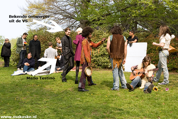 De fotograaf is Mario Testino. Centraal staan een Amerikaanse ontwerper en een model. Het thema van de shoot is de musical Hair. Een aantal acteurs uit de cast figureren. Ze moeten op aanwijzing van de fotograaf vooruit springen langs de ontwerper en het model.