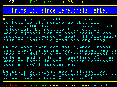 Onze mooi-weer-prins gaat zich binnen het IOC sterk maken om de fakeltocht over de wereld te stoppen omdat er teveel wordt gedemonstreerd. En het kost nog veel geld ook (dat het ook een verspilling van schaarse grondstoffen en vervuilend is, is blijkbaar niet relevant). Onbegrijpelijk! Als je serieus wilt werken aan de mensenrechten in China zou je juist blij moeten zijn met demonstraties. Die vestigen de aandacht op de grote problemen in China. Dat China daar van baalt, is heel goed. Voor zoveel aandacht voor mensenrechten zou je als IOC juist geld vrij moeten maken als je de verbetering serieus aan je hart gaat.