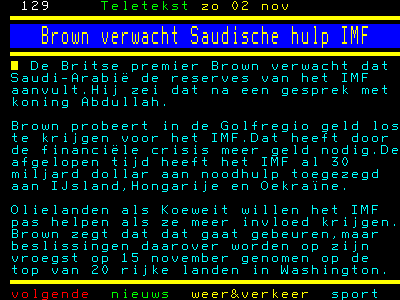 Het moment van de grote machtsverschuiving komt langzaam maar zeker dichterbij en wordt nu al zichtbaar voor de buitenwereld. Vandaag werd bekend dat de olielanden het IMF van geld moeten voorzien, zodat dat instituut landen als IJsland, de Oekraïne en Hongarije op de been kan houden (en dat lijstje groeit in de komende tijd). Omdat niks voor niks gaat in de wereldpolitiek, eisen de golfstaten meer invloed in het IMF. Zolang er olie in de grond zit in het Midden Oosten en de vraag naar brandstoffen blijft toenemen - het economische dipje zal die vraag slechts tijdelijk afremmen - zal die invloed alleen maar toenemen. Dat geldt ook voor de geldschieters China en Rusland, waarvan de laatste ons al aan hun energie-infuus heeft liggen.