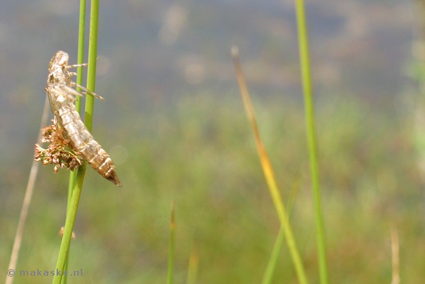 Overigens ontdekten de jongens wel iets heel bijzonders. Aan de plantjes aan de waterkant hangen allemaal uitgedroogde huidjes van libelles en waterjuffers. Die houden zich vast aan de grassen en andere planten tijdens het vervellen. De oude huid blijft aan de planten hangen.