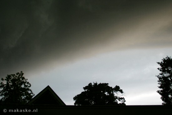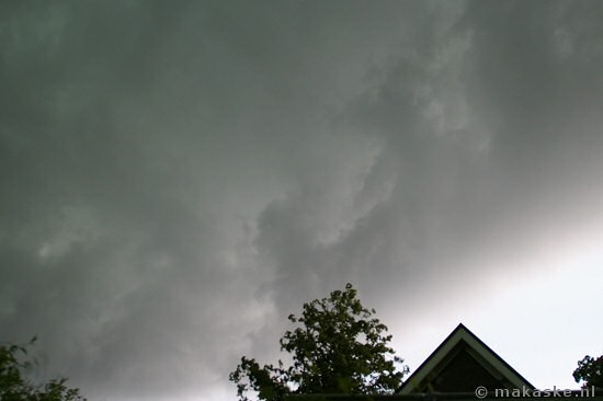 Daarop werd het erg donker en trok er een bizarre lucht met allerlei kleuren over ons huis. Door de harde wind waren die banen helaas verdwenen toen ik mijn fotocamera had gepakt.