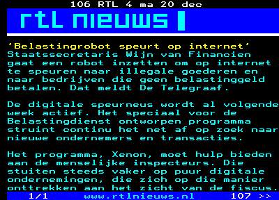 Ik ben benieuwd wanneer de eerste 'ondernemer' is opgespoord door deze fiscale terminator. Gelet op de dynamiek van het internet vrees ik dat dit geldverslindende project wel weer eens de zoveelste houtworm in de schatkist kan zijn. Voor de zekerheid zal ik vanaf volgende week mijn belastingaangifte publiceren op boekenstad.nl.