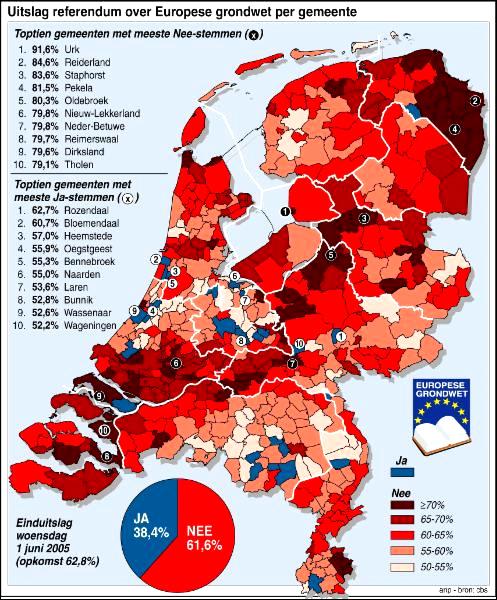 En dan blijkt de afwijzing ineens veel minder erg dan aanvankelijk is voorgeschoteld. Zo zei minister Bot dat de afwijzing geen effect heeft voor de positie van Nederland binnen de EU en gaat minister-president Balkenende het nee gewoon uitleggen in Brussel.