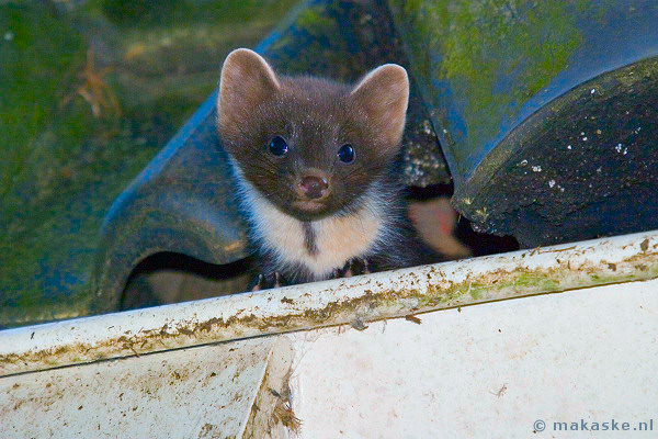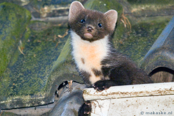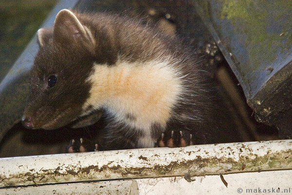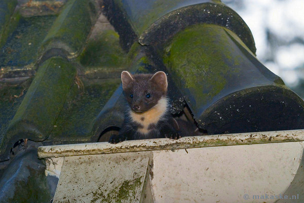 De jonge marters in Wapenveld maken het steeds bonter. Ze zijn niet te beroerd om op hun 'balkon' te poseren voor de camera die slechts een meter of vijf van ze vandaan staat (de foto's zijn 100%, dus niet gesneden).