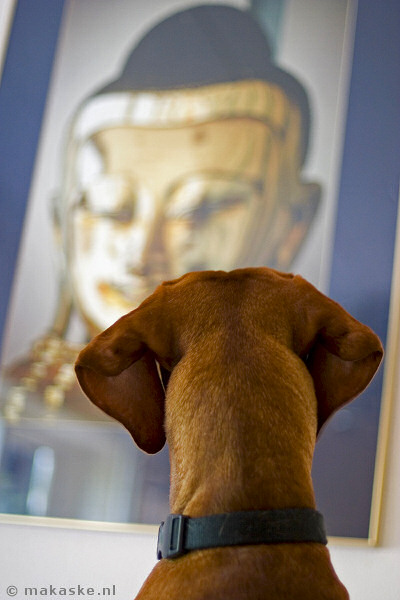 Gebiologeerd kijkt hij naar zijn 'meester'