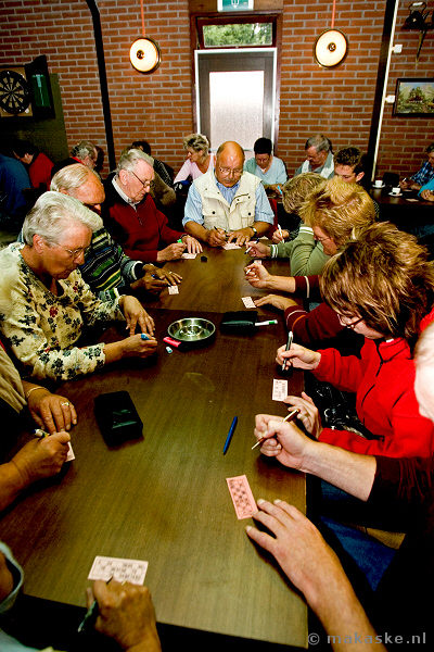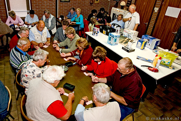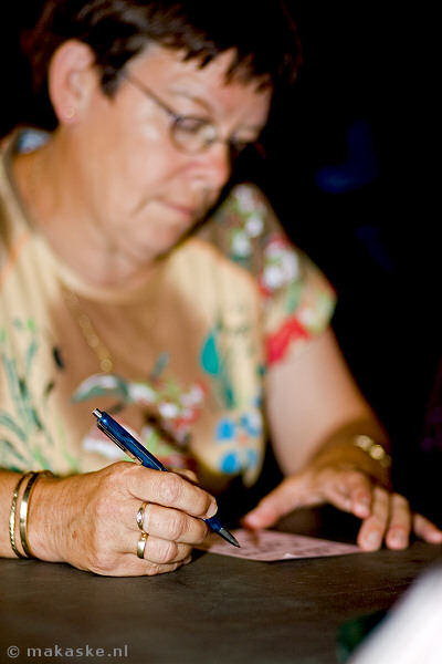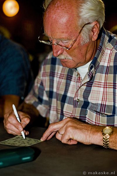 Het is al warm en rokerig in de kantine als ik binnenkom (volgens mij kunnen ze de campingkantines wel sluiten als er een rookverbod van kracht wordt). De gasten praten gespannen door elkaar heen. Voor vijftig Eurocent vinden de Bingobriefjes grif aftrek.