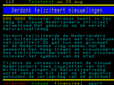 Die 'nieuwkomers' moeten nu wel helemaal denken dat ze in een krankzinnig land zijn gekomen na het krijgen van deze waardevolle cadeaus... de spannende Nederlandse grondwet, de Nederlandse vlag (en dat terwijl er autochtone Nederlanders zijn die liever een Palestijnse vlag buiten hangen) en dan als klap op de vuurpijl... een pluche ooievaar. Ik zou direct teruggaan naar het land van herkomst (maar misschien is dat ook wel beoogd door de autoriteiten).