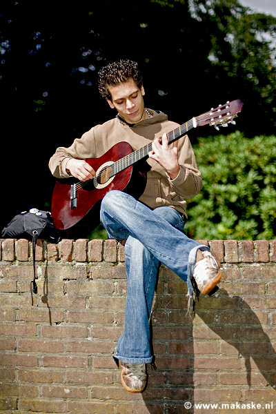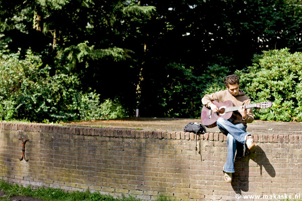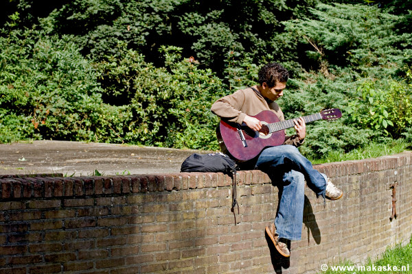 In het Dr. Loefpark - waar eens per jaar het wereldberoemde popfestival E-pop plaats vindt - zat vandaag een jongen eenzaam zonder publiek op zijn gitaar te spelen. Ik sluit niet uit dat de valse gitaar en het nog valsere spel van de gitarist de reden is dat hij op straat is beland. Hoe dan ook... maak kennis met Orro Massimiliano uit Italië.