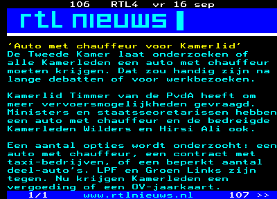 Terwijl de parlementariërs onder aanvoering van van links de burgers uit alle macht de auto uitpesten, vraagt het Kamerlid Timmer van de socialistische PvdA om meer 'vervoersmogelijkheden'. Dit understatement blijkt te betekenen dat deze door haar volk nog nooit gesignaleerde vertegenwoordiger niet langer in het veel te drukke en onbetrouwbare openbaar vervoer wil zitten, maar lekker op de achterbank in het luxe pluche wil wegzakken.