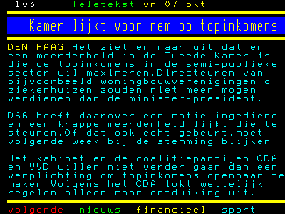 Het CDA is tegen het wettelijk beperken van topinkomens in de semi-publieke sector. De belangrijkste reden daarvoor is volgens een teletekstbericht "dat dergelijke regeling alleen maar ontduiking uitlokt."