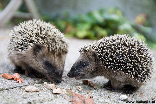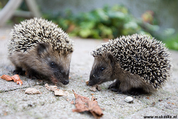 Het zijn twee kleine egels van slechts een paar weken oud die door de moeder zijn achtergelaten. De moeder was nergens te bekennen. Maar die zou ook nooit toestaan dat die twee kleintjes op klaarlichte dag op pad zouden gaan.