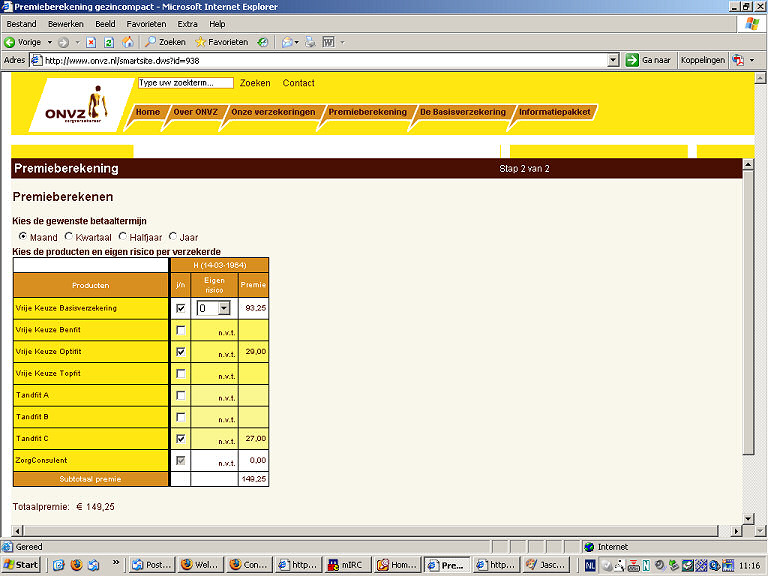 Wie bijvoorbeeld bij verzekeraar ONVZ gaat kijken en daar de premie opvraagt, krijgt dit overzicht te zien: