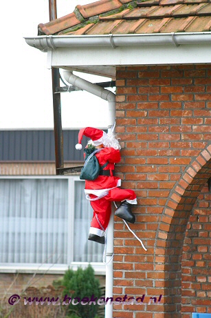 Vandaag betrapte ik deze kleine kerstman. Hij klom snel omhoog en verdween achter de schoorsteen.