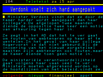 Verdonk komt met een eigen Paasboodschap. Ze is boos. Ze wordt volgens eigen zeggen veel te hard aangepakt door de Kamer. Waarom achten de parlementariërs haar verantwoordelijk voor het beleid van haar ambtenaren???