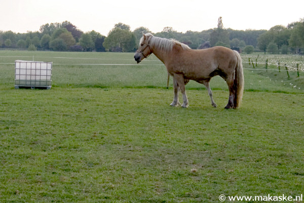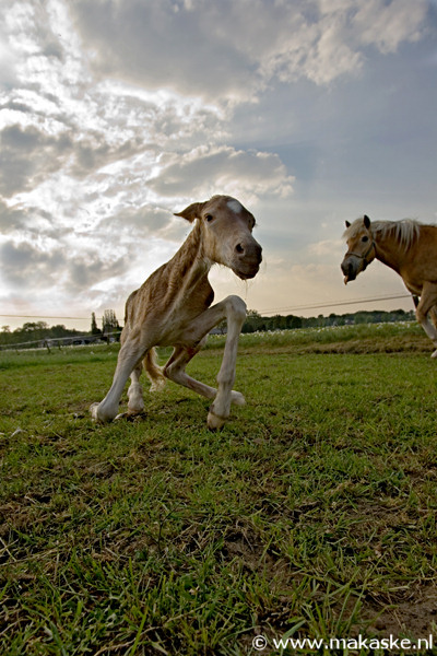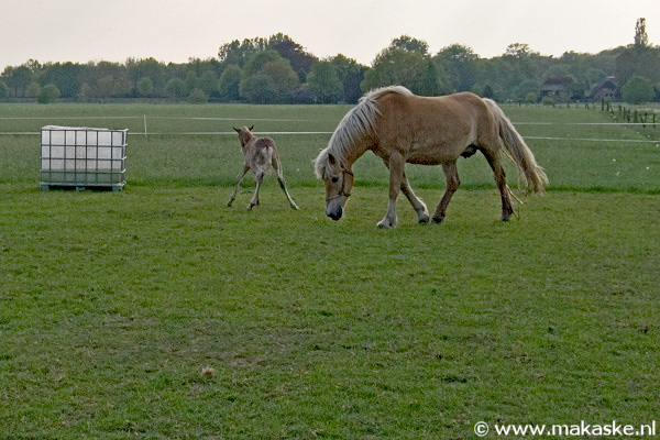 Deze week maakte ik foto's voor het fotoboek over Epe bij een boer die aan het melken was. Hij vertelde dat volgende week één van zijn Haflingers een veulen zou krijgen. Hij beloofde te bellen als het zover is. "Mag dat ook 's nachts? Ik beloof niets want zoals je weet willen paarden eigenlijk helemaal geen pottekijkers dus ik vermoed niet dat we het zullen zien."