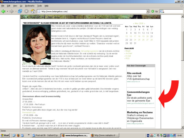 Ik ben weer even op mijn stoel geklommen nadat ik er met een grote klap vanaf was getuimeld van verbazing toen ik ineens een (betaalde?) google advertentie van Gemeentebelangen Epe zag verschijnen op de betreffende pagina met dit Rita Verdonk verhaal op belangeloos.com. Zou deze partij soms ook die slogan voeren?