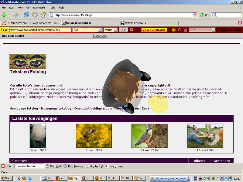 Je hoeft mijn foto's niet mooi te vinden, maar dan hoef je er toch niet zo mee om te gaan. Gelukkig registreerde mijn secret website security system de dader... Als u hem herkent, doe mij en lol en bel gelijk de politie in uw woon- of verblijfplaats.