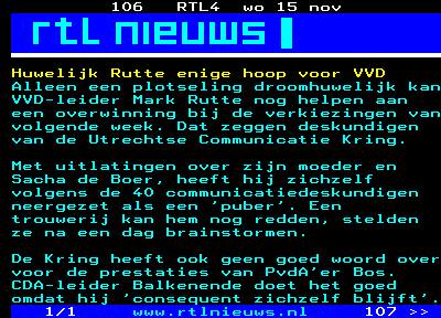 Eén of andere Utrechtse communicatiekring met 'deskundigen' heeft de politieke oplossing voor Mark Rutte: hij moet gaan trouwen. Alleen daarmee kan hij zijn eigen imago redden.